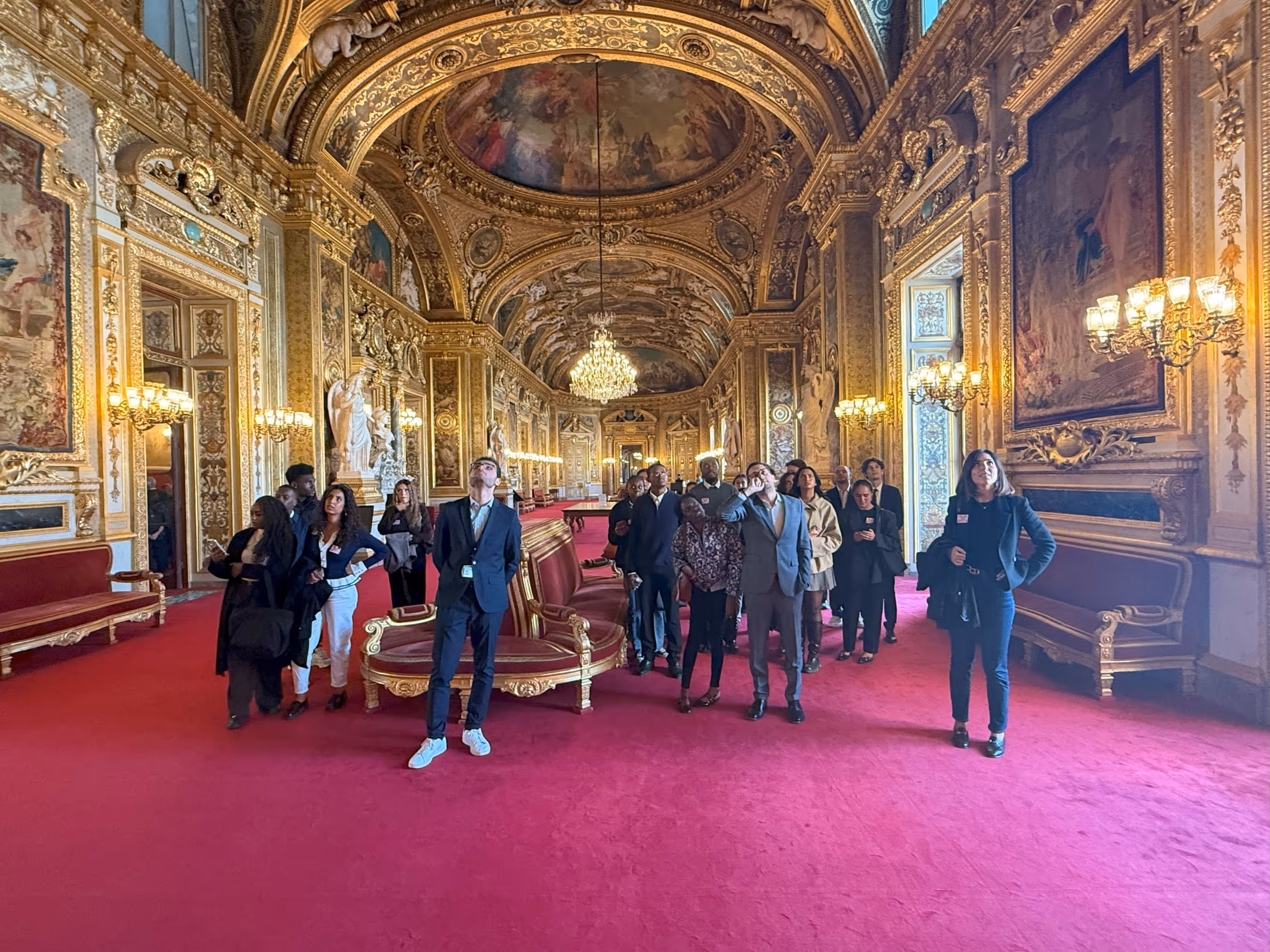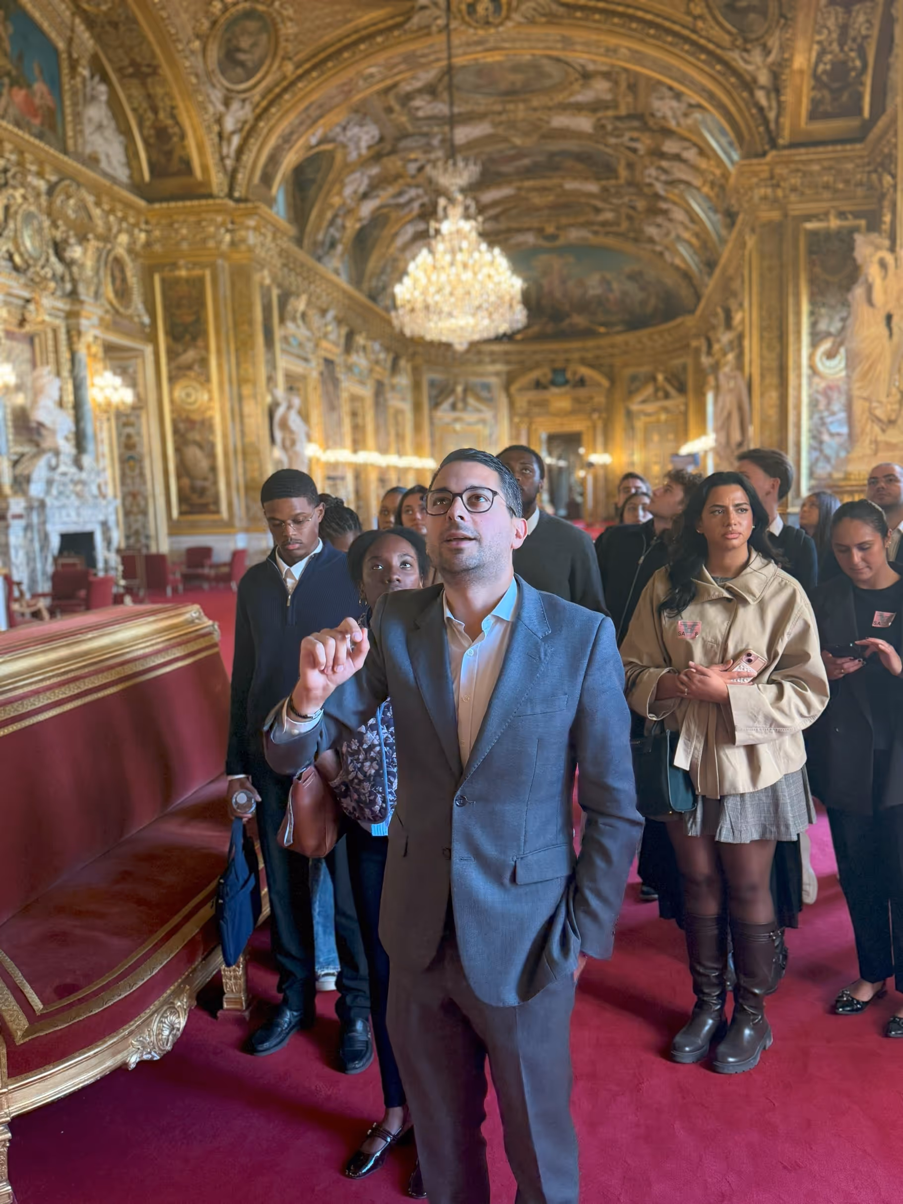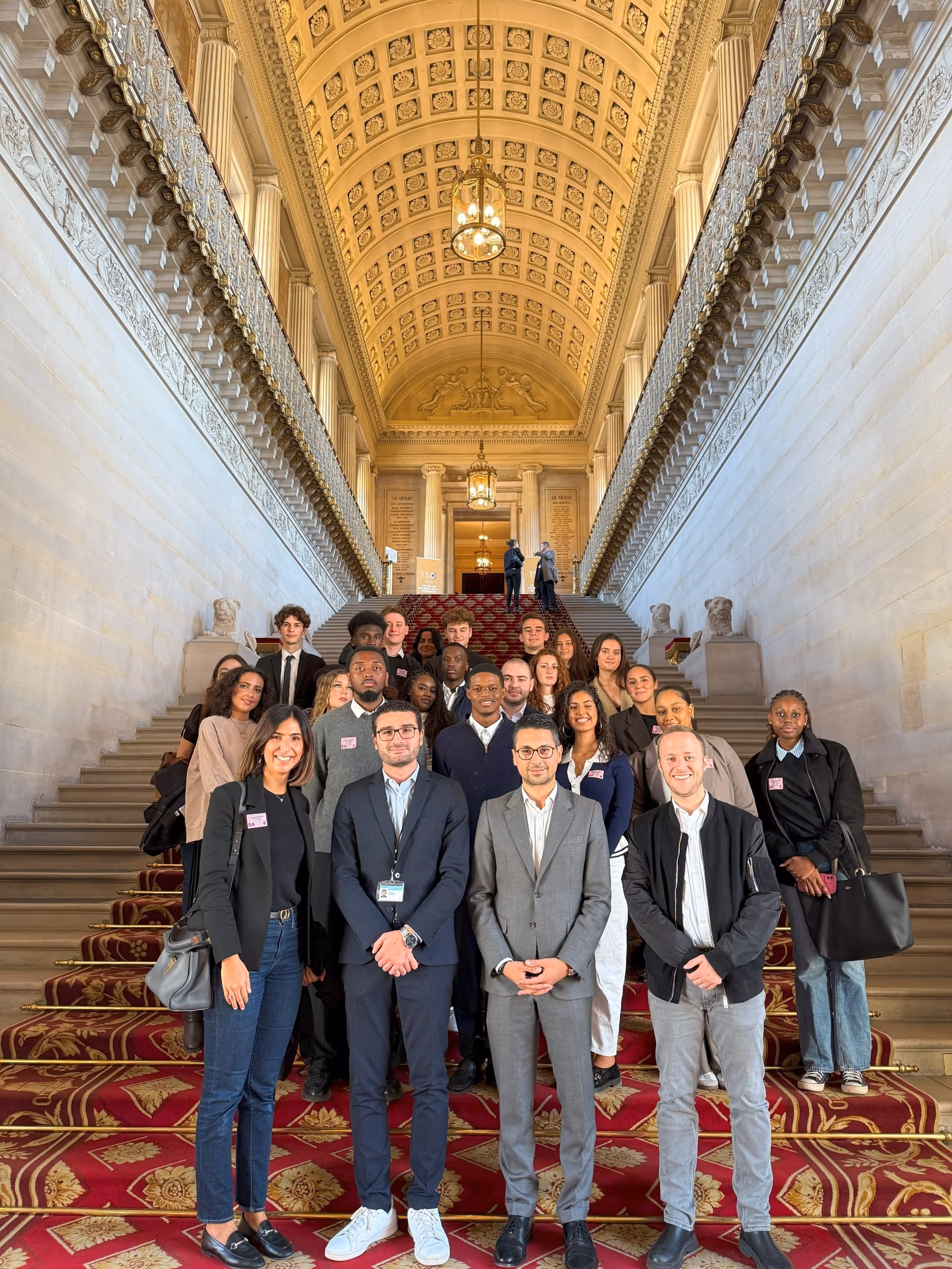 Nous avons été accompagnés par l'ancien député Hadrien Ghomi, actuellement secrétaire général du groupe RDPI au Sénat, et Anthony Landais, conseiller Finances, Défense et Affaires étrangères du groupe RDPI (Rassemblement des démocrates, progressistes et indépendants) et secrétaire général de Renaissance Seine-et-Marne. Grâce à eux, nous avons pu comprendre à la fois le fonctionnement du Sénat, le rôle des sénateurs et l'histoire de ce lieu emblématique.